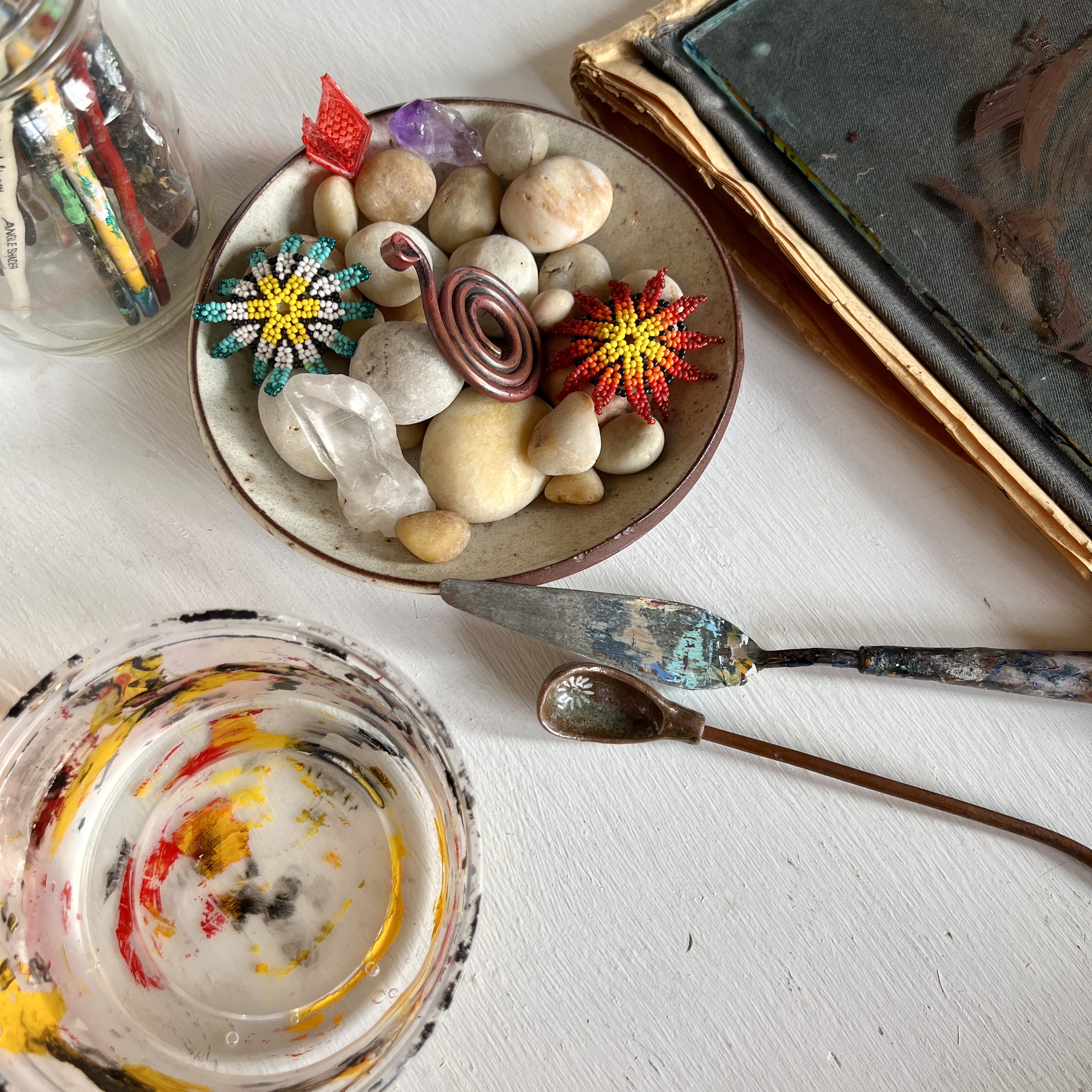 Sara is a weaver, painter, loves natural materials, and chooses community participation and collaborative methods whenever possible. She uses pigments passed down through her matrilineal line, and plant fibres she’s tended on land she nourishes and learns from.