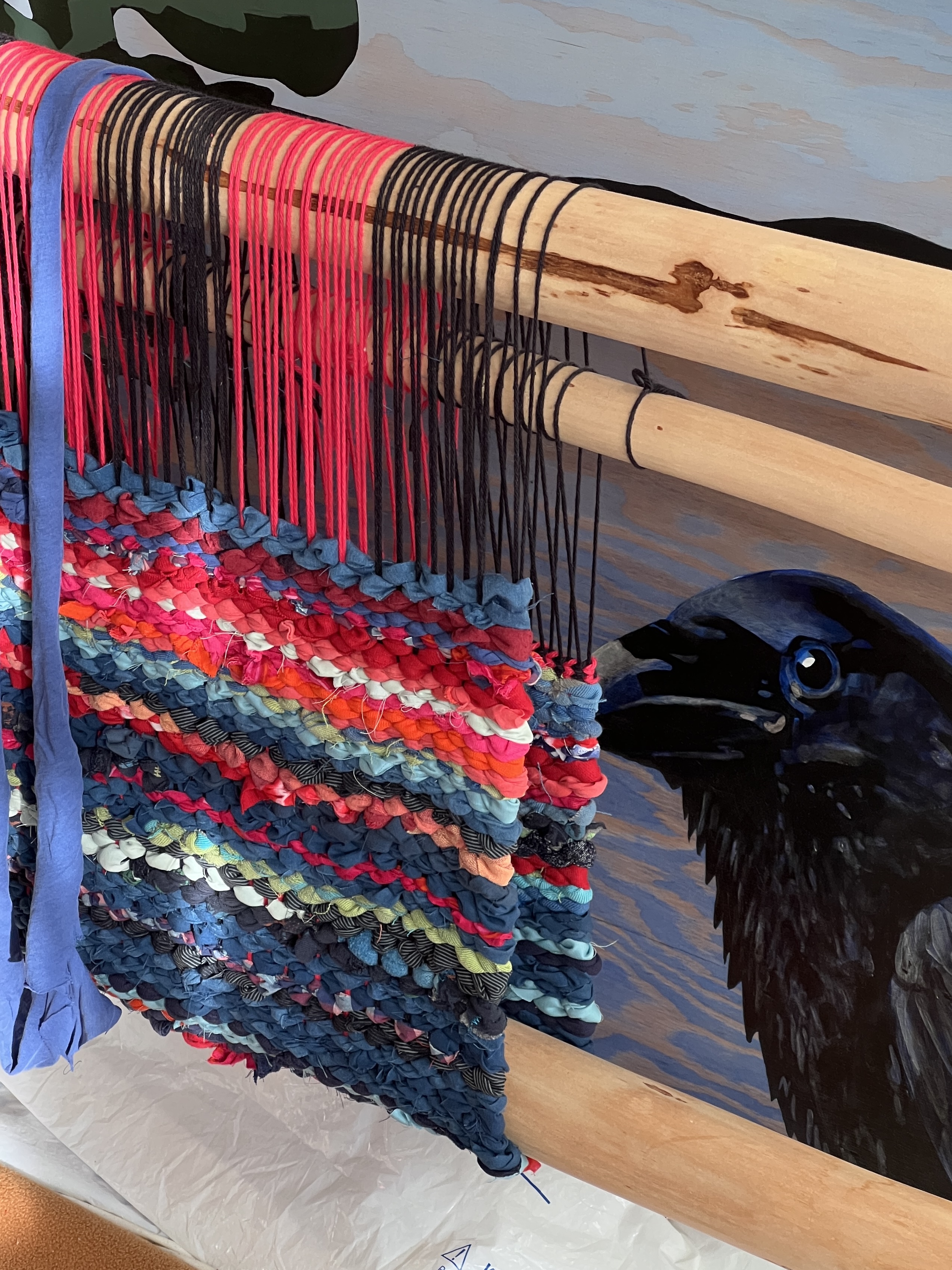 I am weaving on a Salish-style floor loom I built from alder trees I (honourably) harvested. I hope to meet others who love water and perhaps have water-honouring practices or stories to share. Also, my mother was a weaver. I will hold a space for you in our circle.
