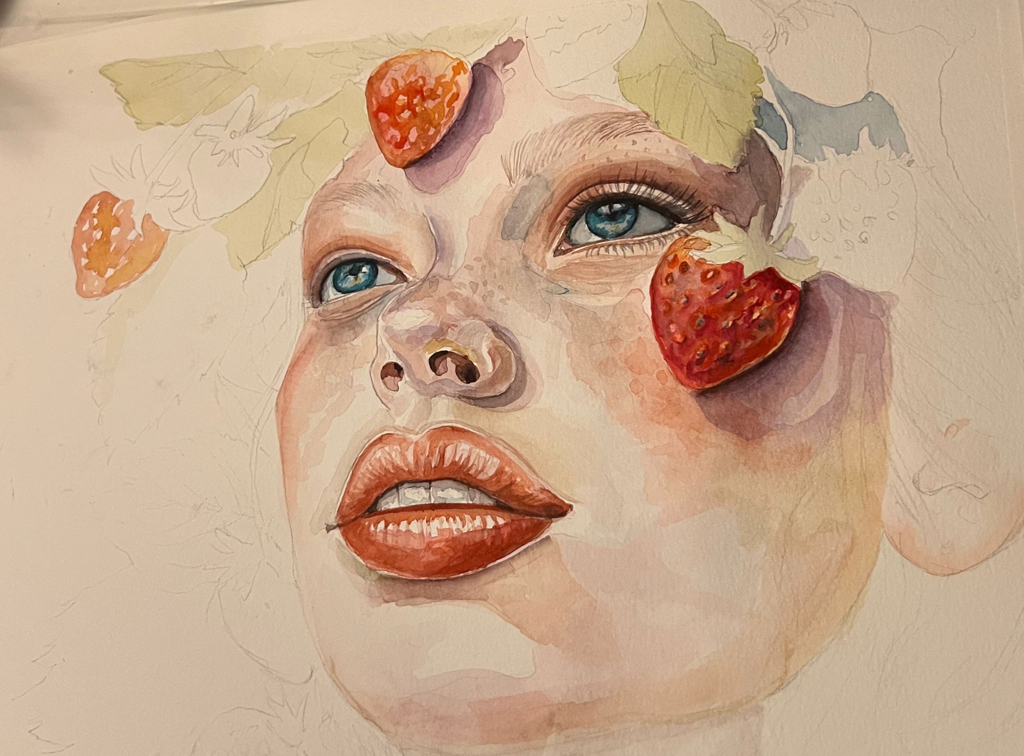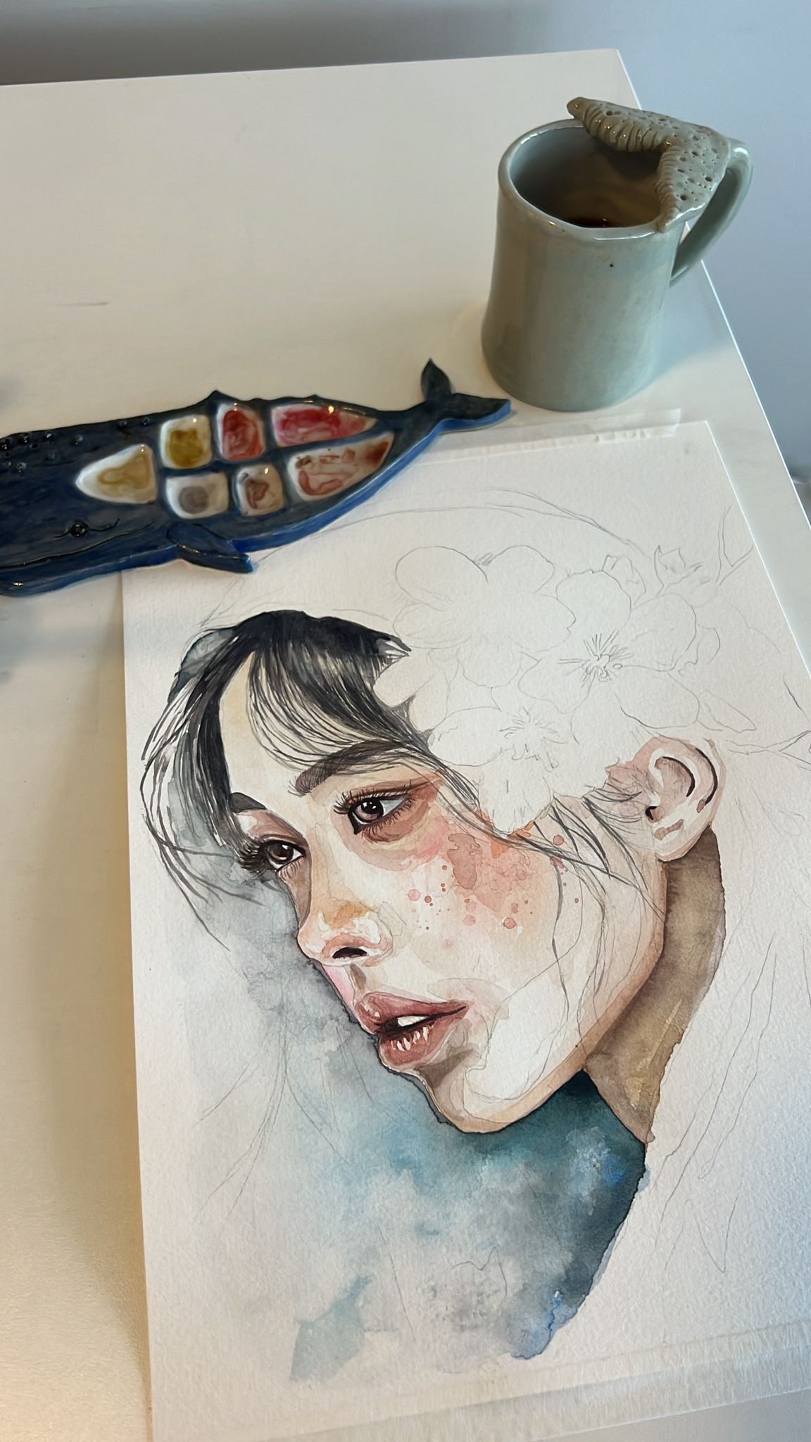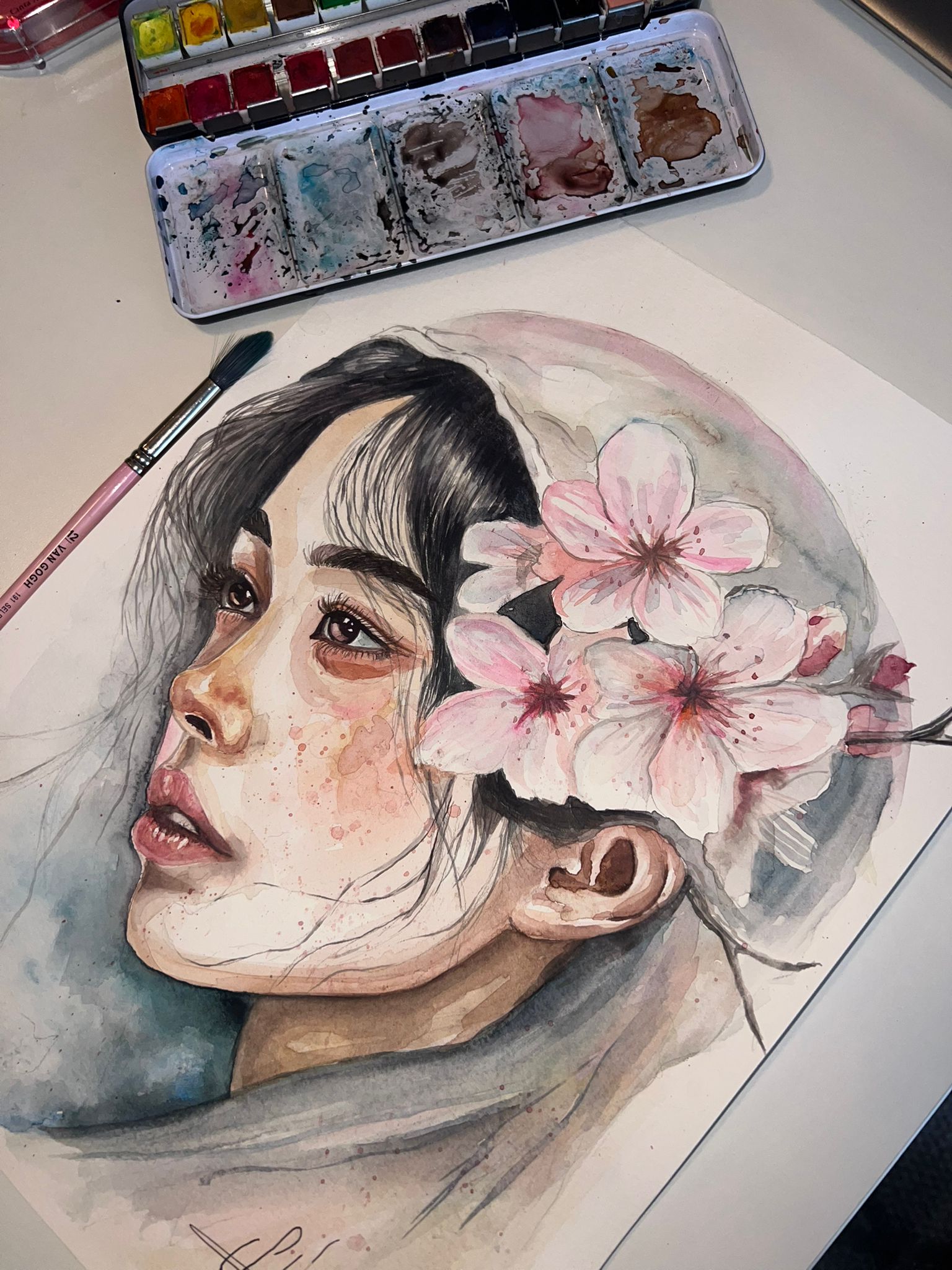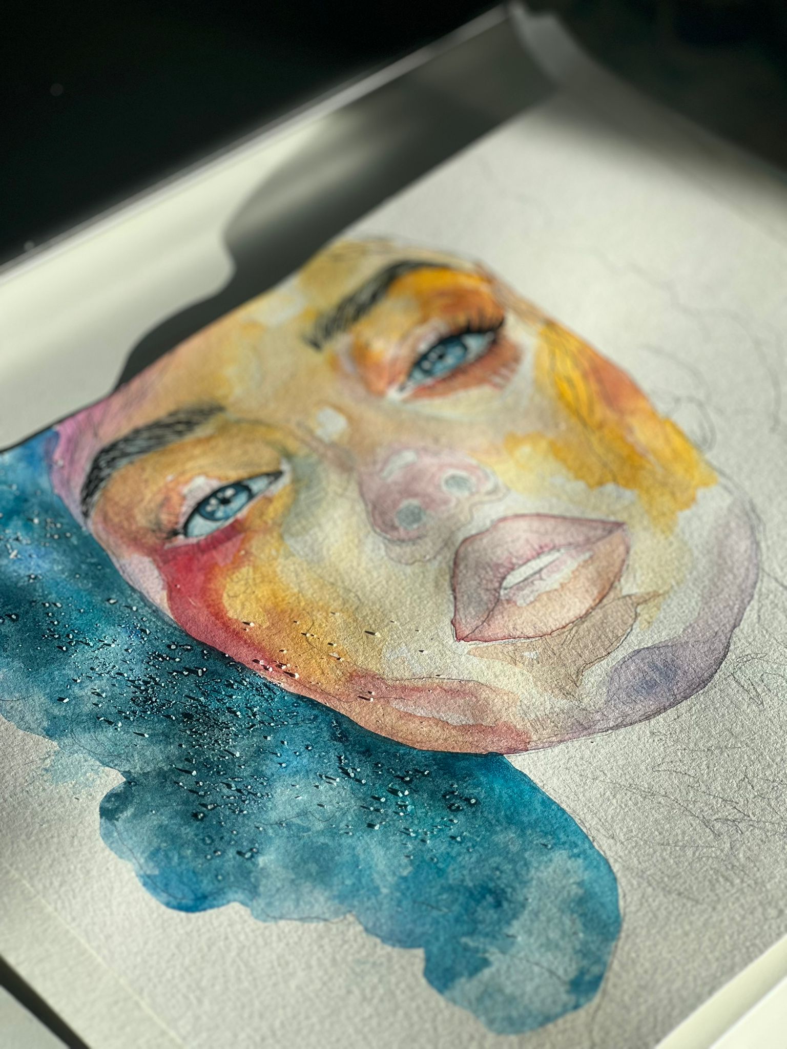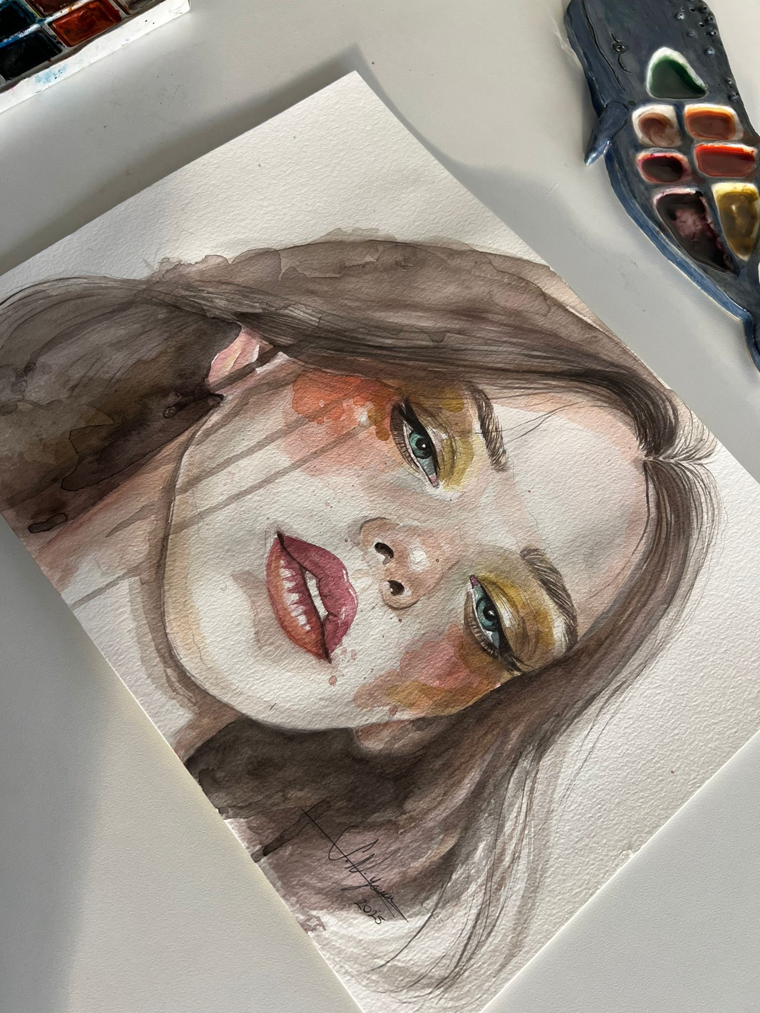 I am guided by a deep belief in the transformative power of art. Personal experiences form the emotional foundation of my practice, while nature provides balance, softness, and quiet inspiration. I work with oil paint, acrylic, watercolor, and mixed media, allowing each material to serve a distinct purpose. Acrylic supports spontaneity through its fast-drying nature, while oil paint creates depth, realism, and fluid color transitions. Watercolor is applied in transparent layers, contributing to a sense of lightness and softness.